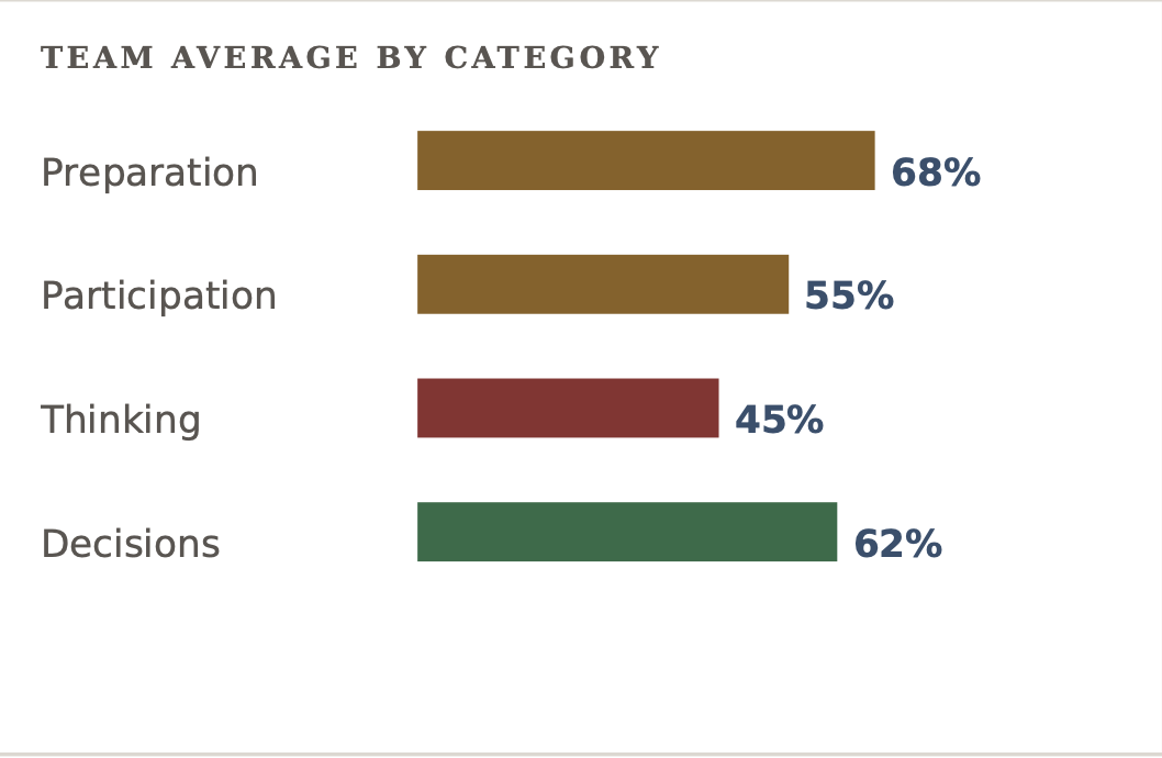 It’s a short diagnostic that gives you a clear picture of how your meetings are working — not just in terms of efficiency, but the quality of thinking, contribution and engagement.